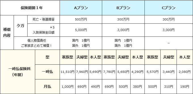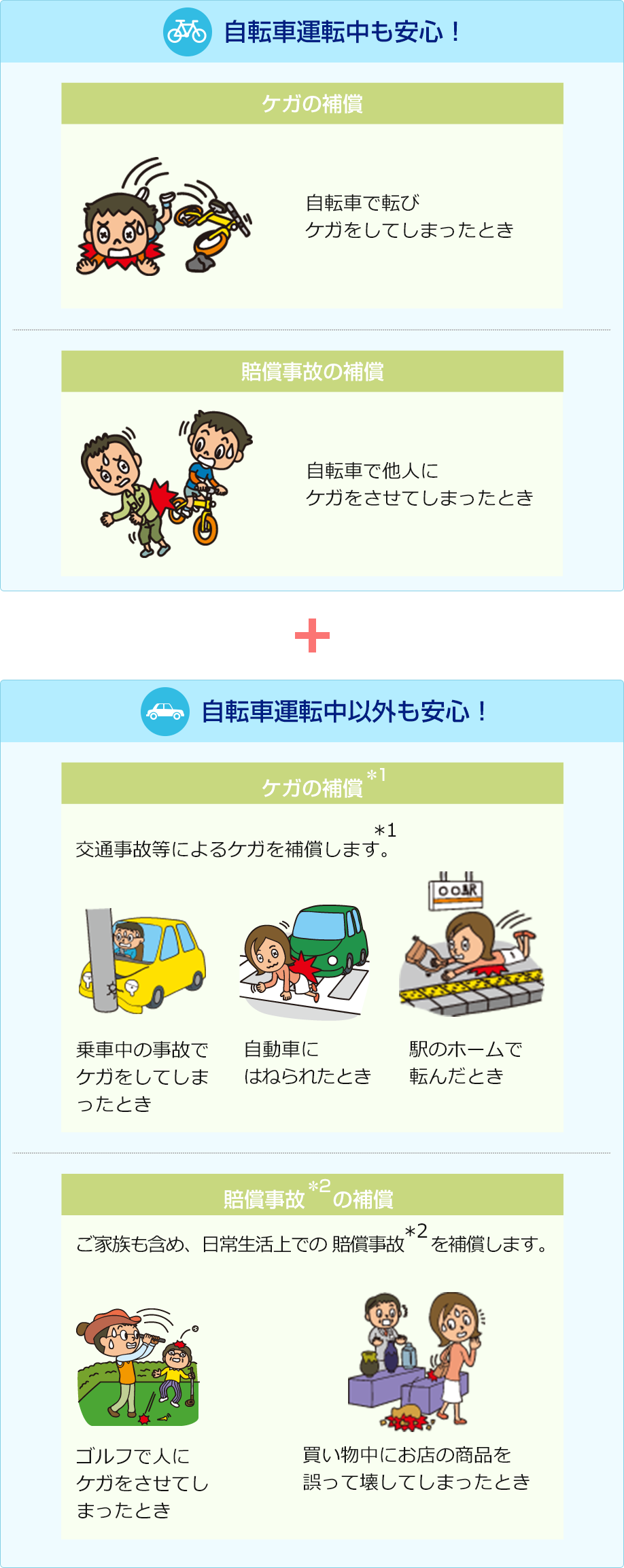 - *1 交通事故によるケガや駅構内におけるケガ、交通乗用具の火災によるケガ等。なお、本プランは通院補償は対象外となります。